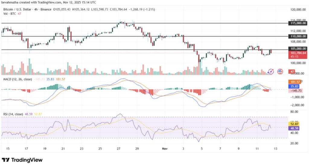 Harga BTC melonjak hingga $105.045, mencatatkan kenaikan sebesar 0,52% pada 12 November. Meskipun terjadi sedikit penurunan, cryptocurrency ini terus bertahan di dekat angka kritis $105.000.