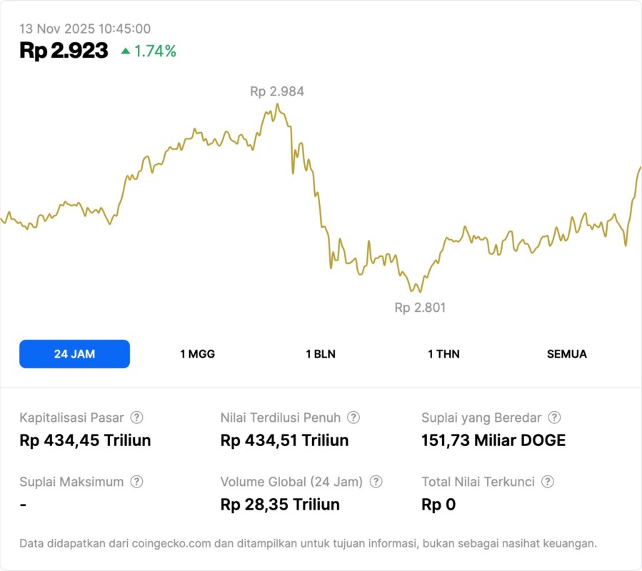 Meskipun Dogecoin (DOGE) mengalami penurunan nilai dari puncak tertingginya, ada potensi kenaikan harga di masa depan. Faktor-faktor seperti pemotongan suku bunga terbaru dan berakhirnya penutupan pemerintah AS dapat memberikan momentum baru. Selain itu, persetujuan ETF Dogecoin (DOGE) yang sedang menunggu keputusan dari SEC, jika disetujui, bisa mendorong Dogecoin (DOGE) mencapai nilai tertinggi baru.