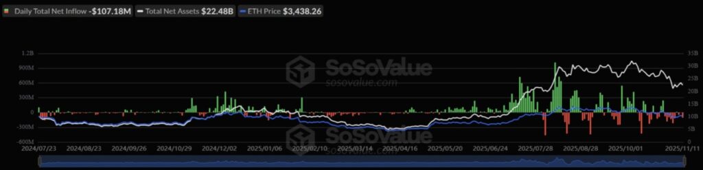 Dana yang diperdagangkan di bursa (ETF) Ethereum spot baru-baru ini mengalami penurunan besar dalam minat investor, dengan total arus keluar mencapai $107 juta. Menariknya, kesembilan ETF dalam sektor ini tidak tercatatkan adanya arus masuk selama periode tersebut.