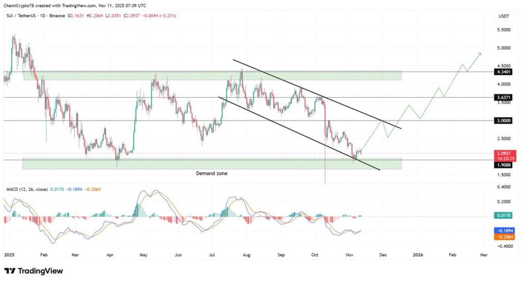 Jakarta, Pintu News –Setelah mengalami rebound dari zona permintaan $1,8–$2,1, harga SUI kini menjadi sorotan. Zona ini dianggap sebagai area akumulasi yang kuat oleh banyak analis, yang memprediksi pemulihan jangka panjang. Sentimen on-chain yang meningkat dan kemitraan strategis dengan Bluefin menambah optimisme terhadap pertumbuhan institusional jaringan ini.