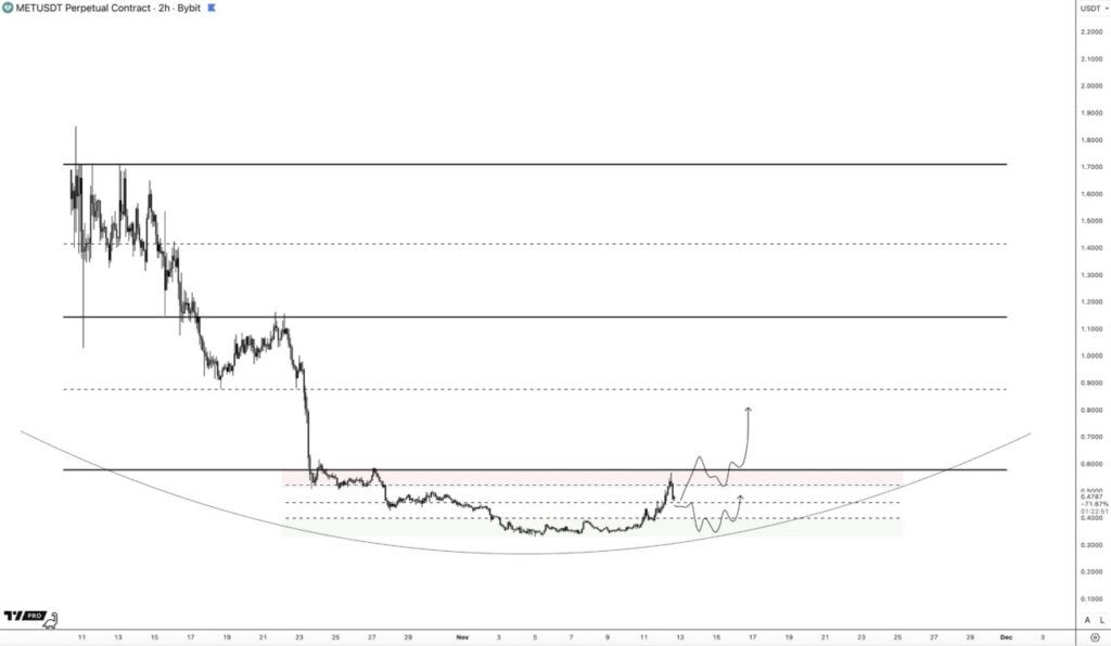 Berdasaran grafik yang dibagikan analis CryptoAsmterdam, $MET menunjukkan pola yang sangat menarik dengan pergerakan harga yang mulai mendatar. Token ini menunjukkan banyak kekuatan relatif dalam beberapa waktu terakhir.