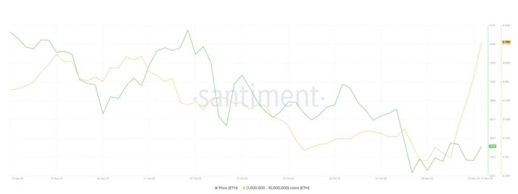 Jumlah tersebut, senilai lebih dari $1,6 miliar, menunjukkan keyakinan kuat di antara pemegang besar bahwa Ethereum berada pada posisi yang siap untuk rebound. Perilaku mereka sering kali menjadi penentu arah pasar yang lebih luas, dan skala akumulasi ini menandakan munculnya kembali kepercayaan.