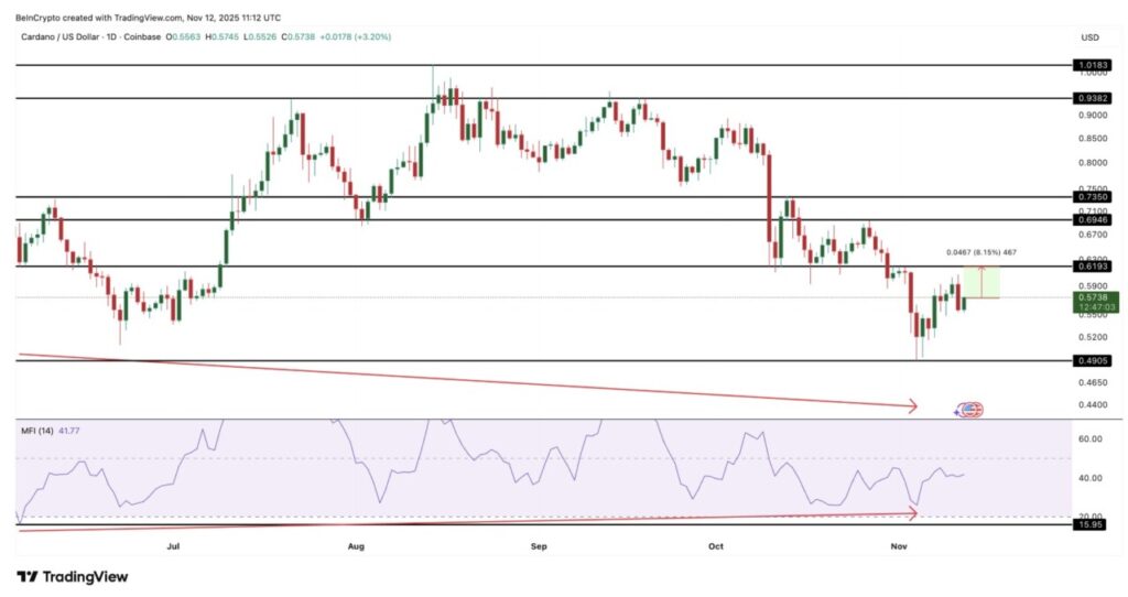 Diagram teknikal semakin memperkuat langkah ini. ADA telah turun 41% dalam tiga bulan terakhir. Namun, antara 5 Juni dan 4 November, harga mencatatkan posisi terendah yang lebih rendah sementara indikator momentum membentuk posisi terendah yang lebih tinggi. Ini adalah pola divergensi bullish klasik yang sering muncul sebelum pembalikan tren.