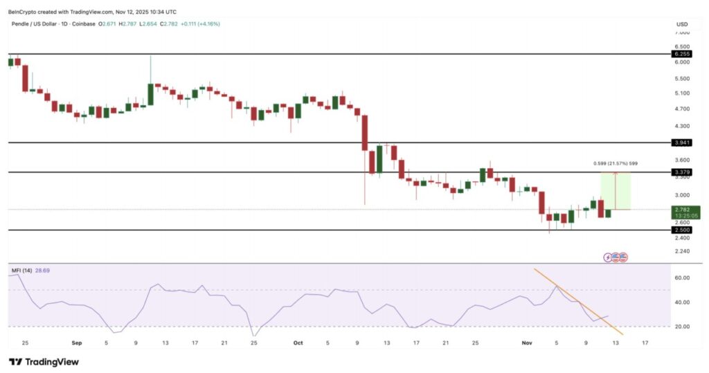 Namun, jika Pendle turun di bawah $2,50, breakout MFI ini bisa gagal, dan penjualan jangka pendek mungkin akan kembali terjadi. Hal ini bisa menyebabkan token DeFi ini menguji level terendah baru.