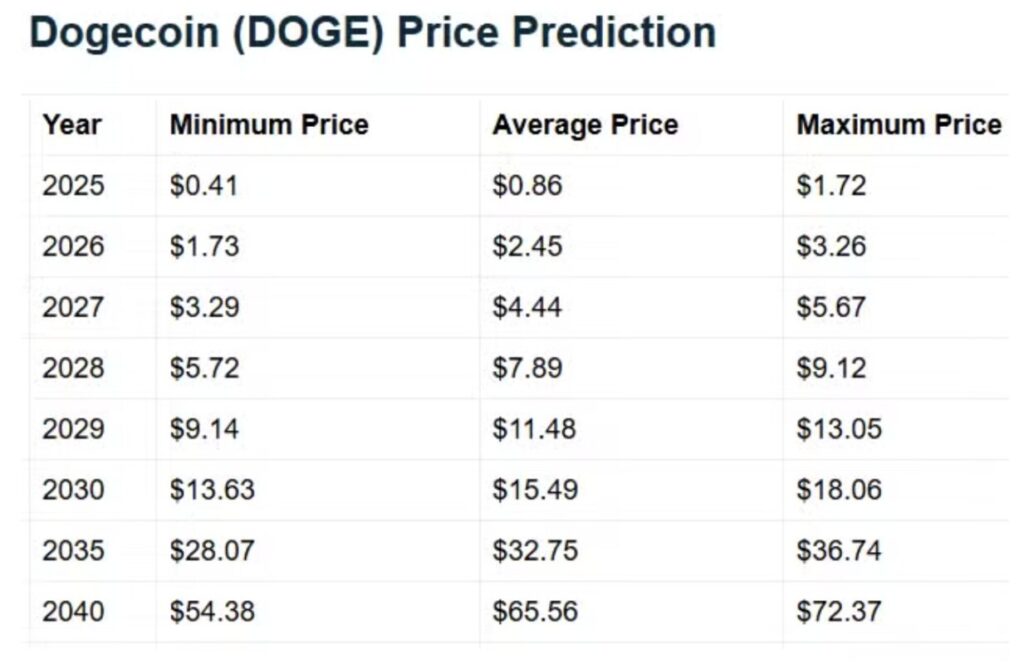 Platform prediksi Telegaon memperkirakan harga Dogecoin akan berada dalam kisaran $28,07 hingga $36,74 pada tahun 2035—jauh lebih tinggi dibandingkan proyeksi dari model AI lainnya.