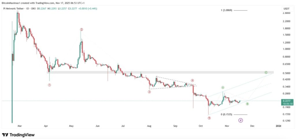 Jika breakout ini berhasil bertahan, harga Pi Network berpotensi melanjutkan kenaikan menuju level resistensi utama berikutnya di sekitar $0,50. Baik struktur gelombang maupun pola saluran mengindikasikan bahwa PI kemungkinan telah mencapai titik terendah dan sedang bersiap untuk fase kenaikan berikutnya.