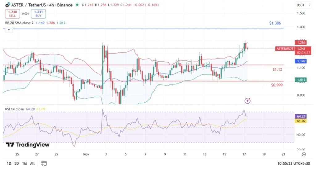 Jika momentum bullish berlanjut dan harga berhasil menutup di atas $1,26, Aster bisa mencapai target harga $1,38 dalam beberapa hari ke depan.