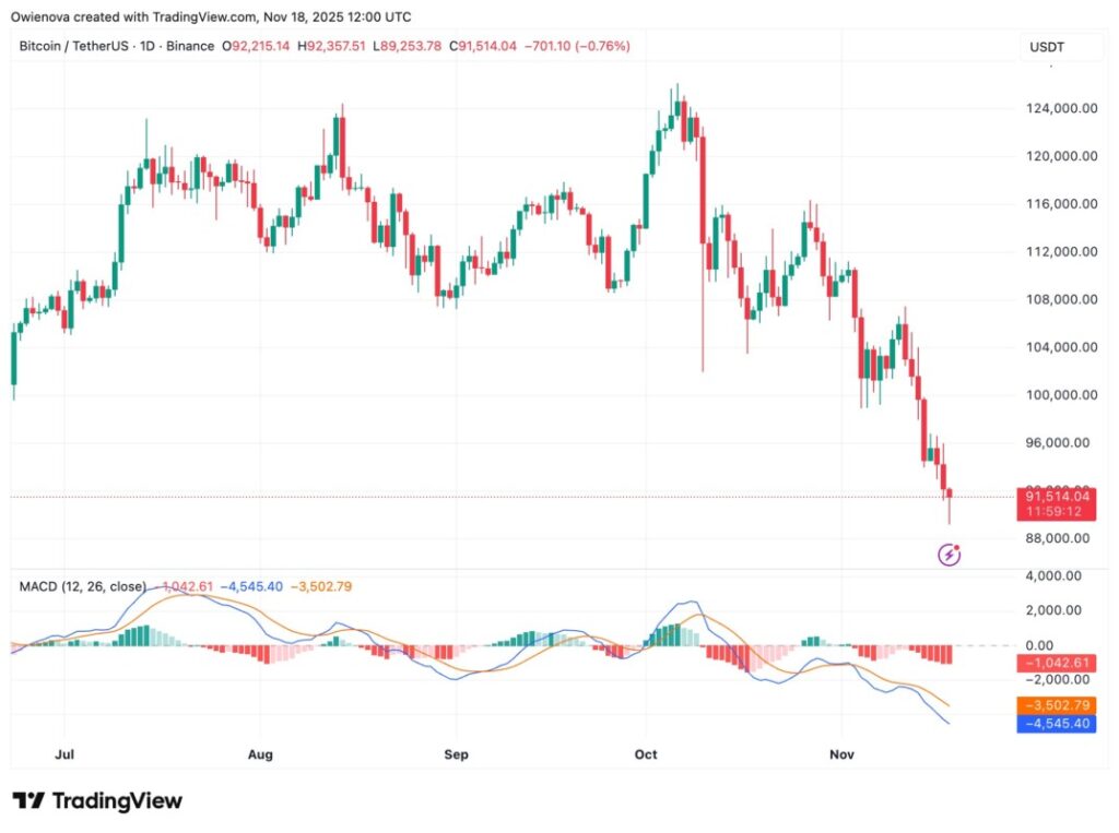 Sementara itu, Bitcoin (BTC) telah menembus di bawah supertrend mingguan dan EMA50 mingguan, mengonfirmasi bahwa momentum belum berbalik dan Bitcoin (BTC) masih dalam fase koreksi. Stockmoney Lizards mencatat bahwa dari sini, zona $90.000 adalah zona pantulan alami, dan kita akan melihat apakah pantulan ini dapat memicu terobosan ke atas, atau jika Bitcoin (BTC) dapat terus meluncur ke kisaran pertengahan $80.000-an.