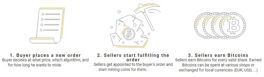 NiceHash beroperasi sebagai perantara antara penjual dan pembeli hashing power. Bagi penjual, ini adalah cara mudah menghasilkan Bitcoin dengan memanfaatkan perangkat keras yang tidak digunakan. Bagi pembeli, ini memberi fleksibilitas untuk menambang koin tertentu tanpa harus memiliki perangkat sendiri. NiceHash mendukung lebih dari 30 algoritma mining, dan memberikan akses ke beragam pool mining di seluruh dunia.