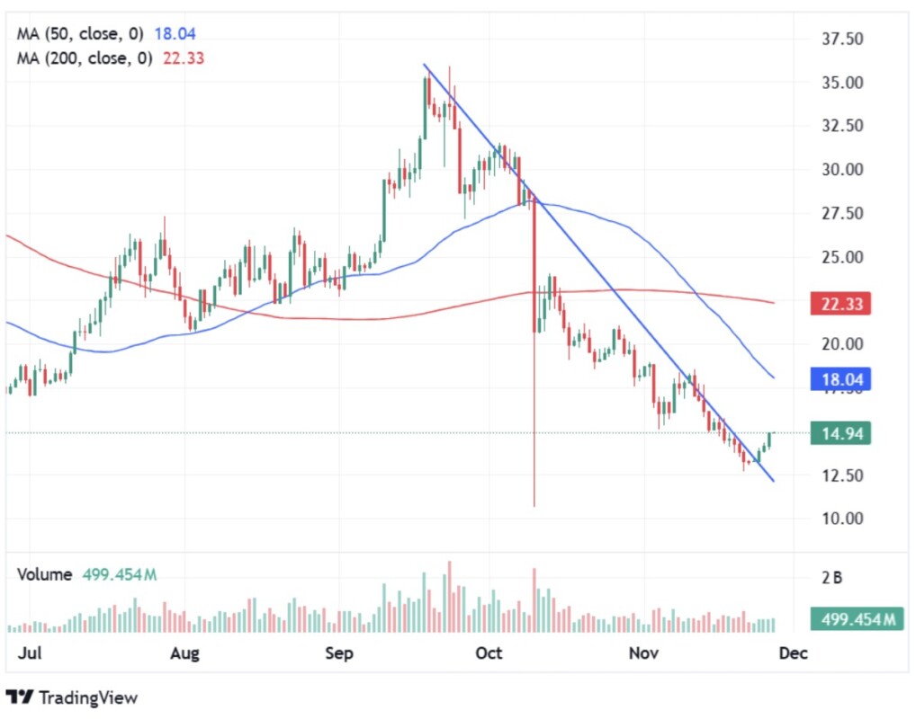 Menyusul pengumuman terbaru dari Bitwise, harga AVAX telah melonjak hampir 7%, dengan nilai perdagangan mendekati $15 dan kapitalisasi pasar sekitar $6,41 miliar. Meskipun demikian, AVAX masih diperdagangkan di bawah rata-rata pergerakan 50 hari sebesar $18, yang perlu direbut kembali untuk mengkonfirmasi tren bullish yang lebih kuat.