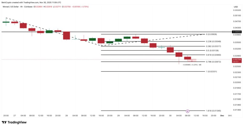 Laporan BeInCrypto per 30 November 2025 menyebutkan beberapa indikator teknikal penting yang memperlihatkan lemahnya arus uang masuk ke MON dan dominasi kekuatan jual. Apakah MON akan mengikuti jejak Pi Coin yang anjlok lebih dari 90%?