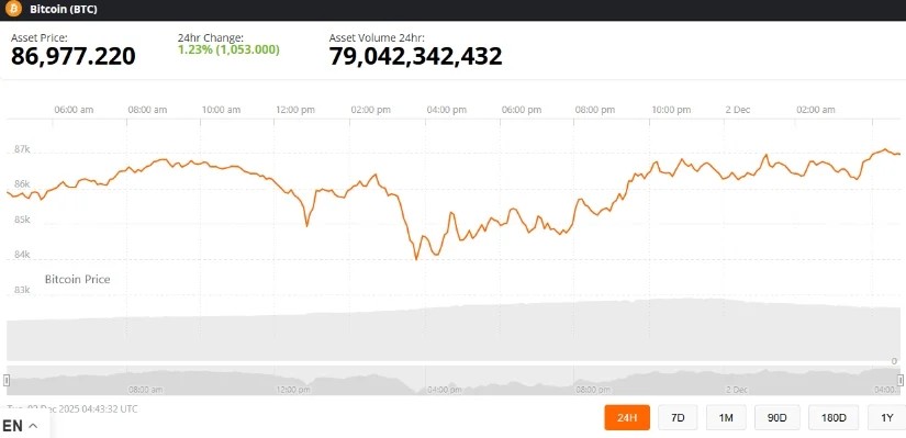 Menurut laporan terbaru, harga BTC sempat turun sekitar 6% hingga menembus level US$ 90.400 pada 1 Desember 2025.