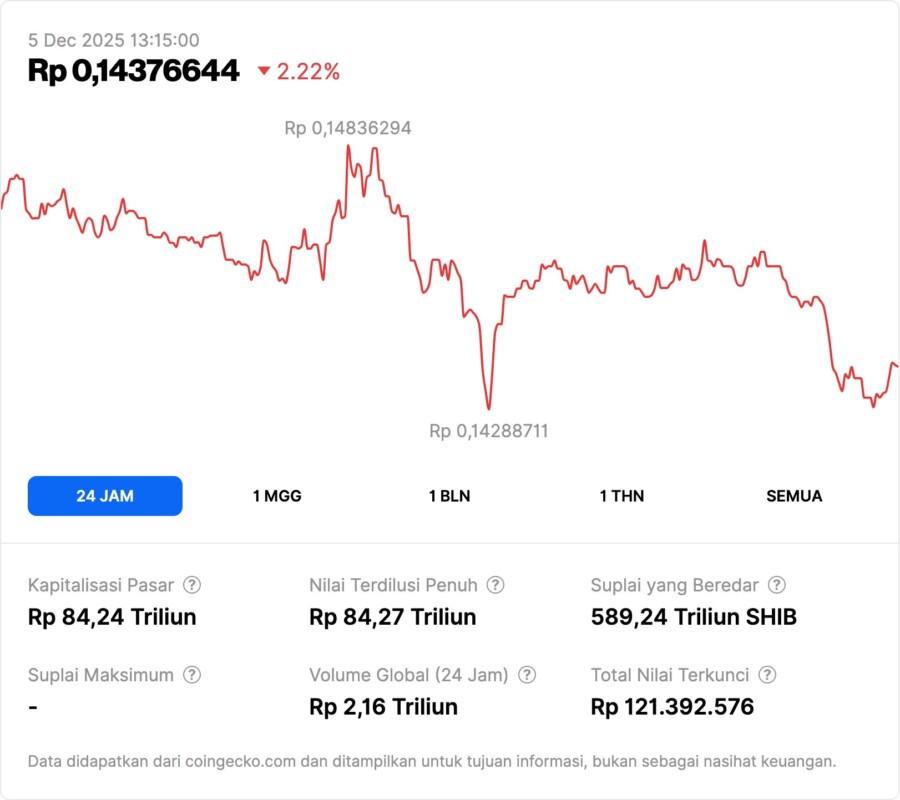 Koin Shiba Inu (SHIB) telah berada di sekitar harga $0,0000088, sebuah level yang sering kembali dicapai oleh pasar. Meskipun grafik harga tidak menunjukkan adanya pemicu khusus yang dapat menarik minat pembelian dalam jumlah besar, kondisi harga yang stagnan dan sentimen pasar yang lemah seringkali menjadi kesempatan bagi para whale untuk membeli dalam jumlah besar tanpa menimbulkan kecurigaan.