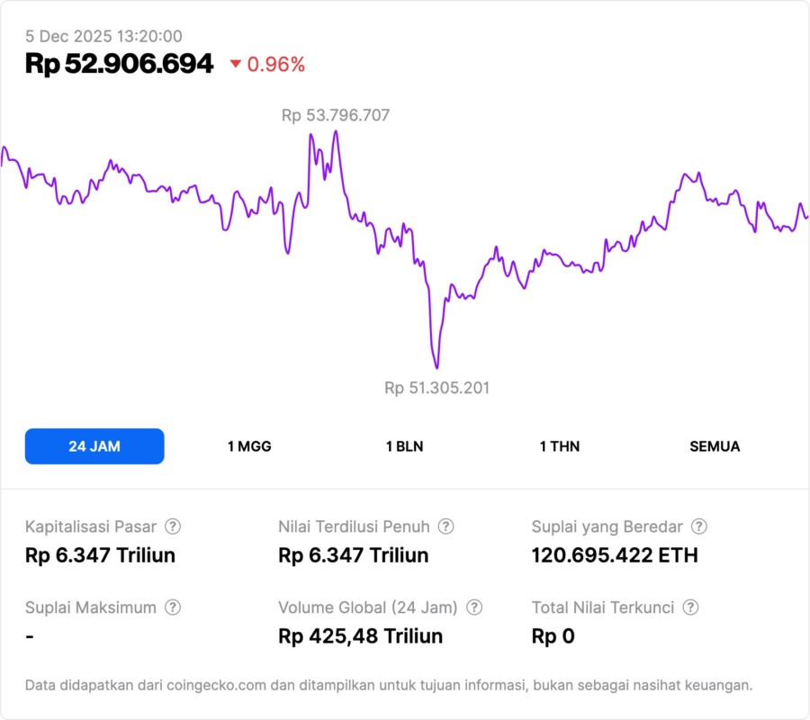 Meskipun ada volatilitas harga, Ethereum (ETH) mengalami kenaikan dalam 24 jam terakhir, dari titik terendah $3.059,98 menjadi $3.238,56. Pada saat penulisan, Ethereum diperdagangkan pada $3.164,88, menunjukkan peningkatan sebesar 2,02% dalam periode tersebut.