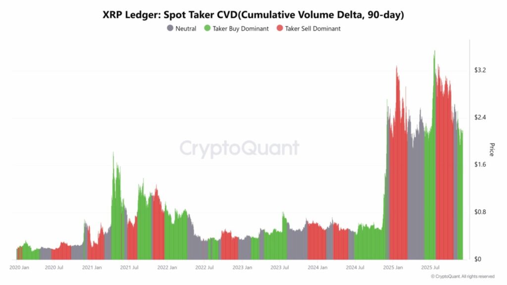 Arus keluar spot menunjukkan aktivitas yang persisten, namun pola terbaru menunjukkan moderasi yang lebih jelas. Gerakan ini mengurangi tekanan jual jangka pendek pada harga XRP karena pasokan keluar dengan intensitas yang lebih lemah.