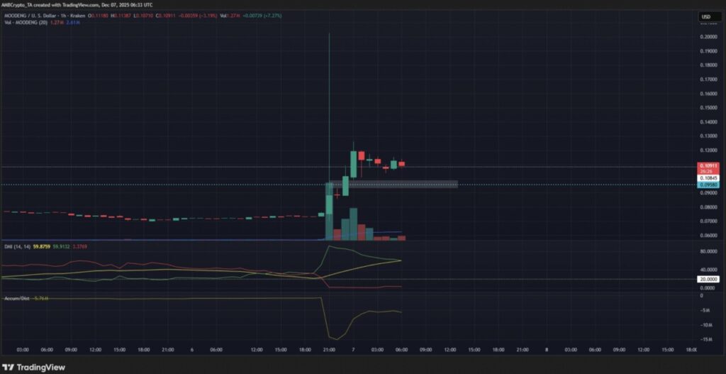 Kenaikan harga yang menembus level $0,12, disertai dengan peningkatan aktivitas di media sosial dan lonjakan volume perdagangan, bisa menjadi sinyal awal dari pemulihan harga Moodeng.