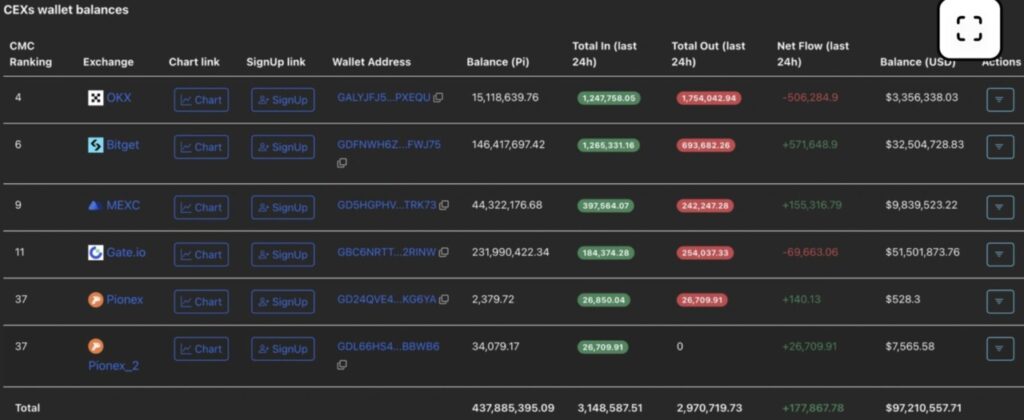 Data dari PiScan mengungkapkan bahwa dalam 24 jam terakhir, dompet milik bursa terpusat (CEX) menerima aliran masuk sebanyak 177.867 token PI, sehingga total saldo yang tersimpan mencapai 437,88 juta token.