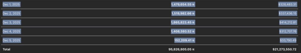 Kapitalisasi pasar PI tercatat sekitar $1,84 miliar, sementara valuasi penuh berdasarkan total suplai (fully diluted valuation) mencapai $2,83 miliar. Volume perdagangan selama 24 jam terakhir mencapai sekitar $15,68 juta, menandakan adanya aktivitas transaksi yang cukup stabil di tengah koreksi harga.