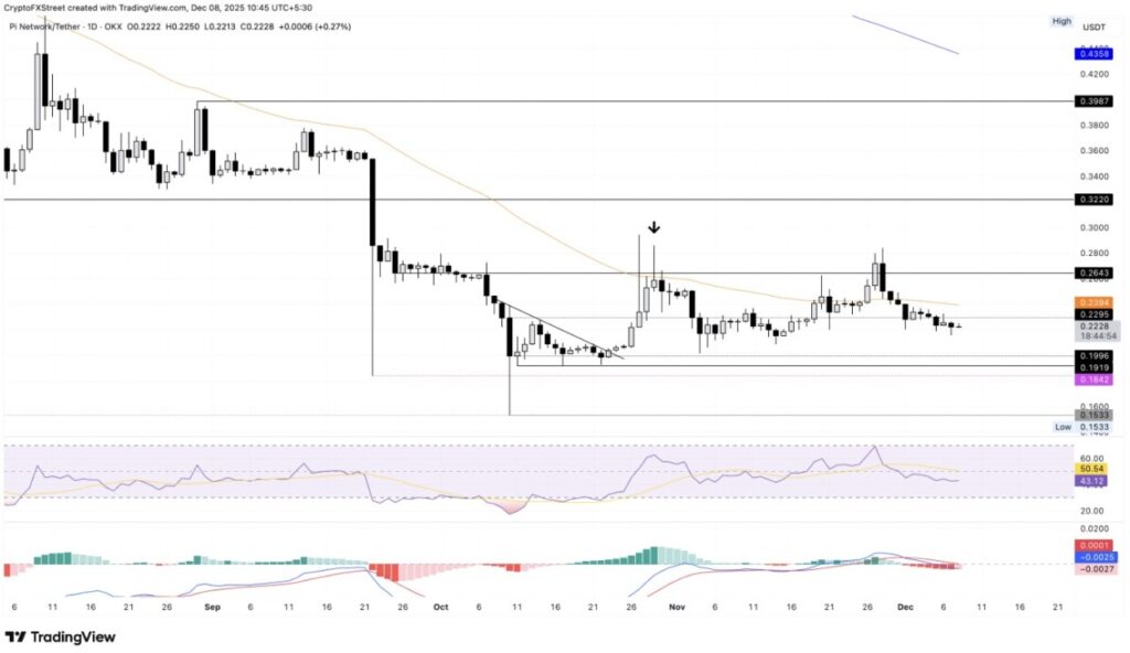 Jakarta, Pintu News – Pi Network (PI) terus mengalami penurunan secara konsisten di bawah rata-rata pergerakan eksponensial (EMA) 50-hari, dan pada Senin (8/12), token ini diperdagangkan di kisaran $0,2200.