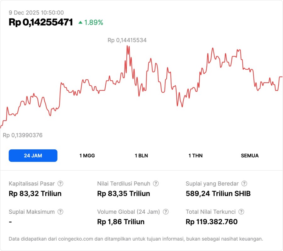 Jakarta, Pintu News ā Setelah beberapa hari mengalami tekanan jual yang meningkat, Shiba Inu kini mulai menunjukkan sinyal bullish di pasar, meskipun masih berjuang untuk mempertahankan dukungan kritis.