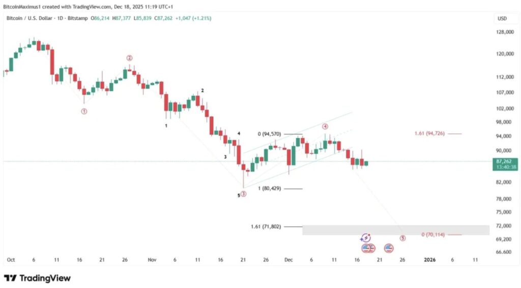 ā€œJika perhitungannya akurat, harga Bitcoin akan turun ke kisaran $70.000–$72.000 untuk menyelesaikan koreksinya,ā€ katanya.