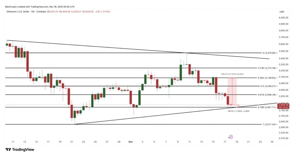 Ethereum saat ini diperdagangkan di dalam segitiga yang semakin menyempit, sebuah struktur yang mencerminkan kebingungan antara pembeli dan penjual. Harga telah terkonsolidasi menuju garis tren bawah, yang sering kali menjadi zona di mana tekanan jual mulai mereda.