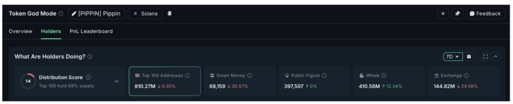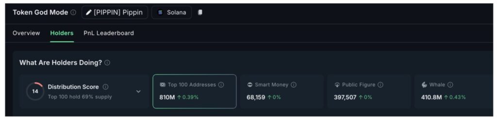 Jika kamu sedang memantau apa yang dibeli oleh whale crypto menjelang rilis data CPI AS, Pippin (PIPPIN) menjadi kasus akumulasi yang jelas. Whale tersebut telah meningkatkan kepemilikan mereka sebesar 12,34%, mengangkat total simpanan mereka menjadi 410,56 juta PIPPIN. Mereka menambahkan sekitar 45 juta PIPPIN selama periode tersebut. Dengan harga saat ini, akumulasi ini bernilai hampir $19 juta.