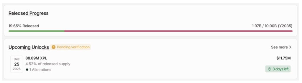 • Jumlah Token yang Akan Dirilis: 88,89 juta XPL (0,89% dari total pasokan)