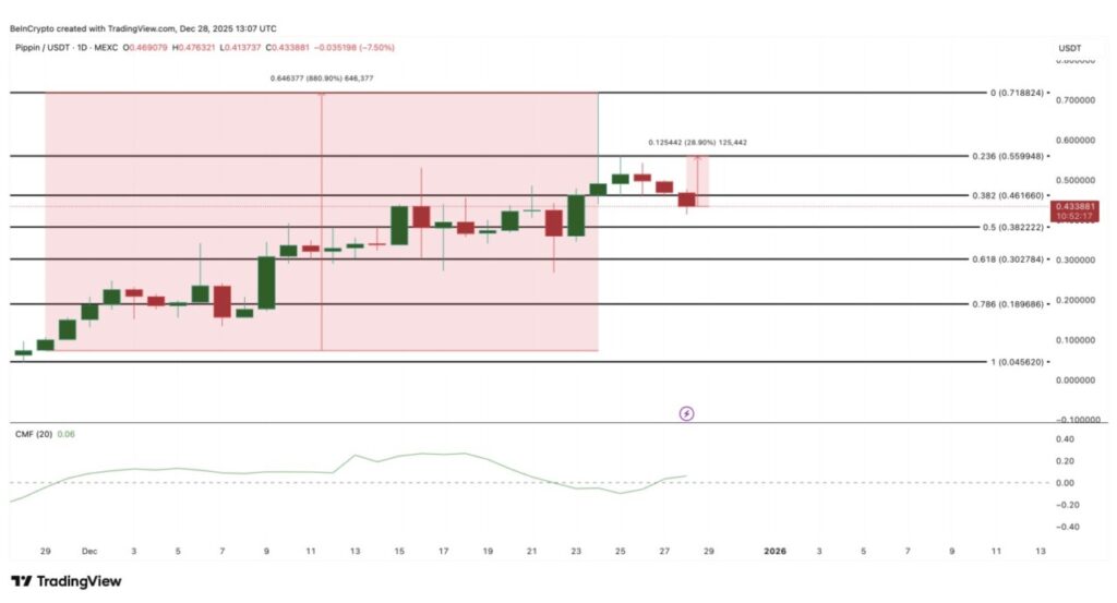 Jika harga berhasil menembus $0,55 dengan meyakinkan, struktur teknikal akan semakin kuat dan membuka jalan menuju $0,71 — yang merupakan level tertinggi lokal sebelumnya. Ini juga bisa menempatkan PIPPIN pada area price discovery jangka pendek untuk rentang Januari.
