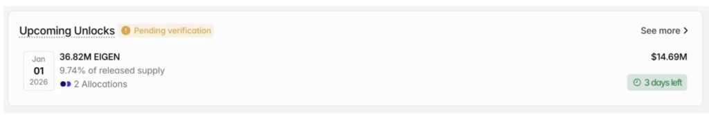 • Jumlah Token yang Akan Dirilis: 36,82 juta EIGEN (2,07% dari total suplai)