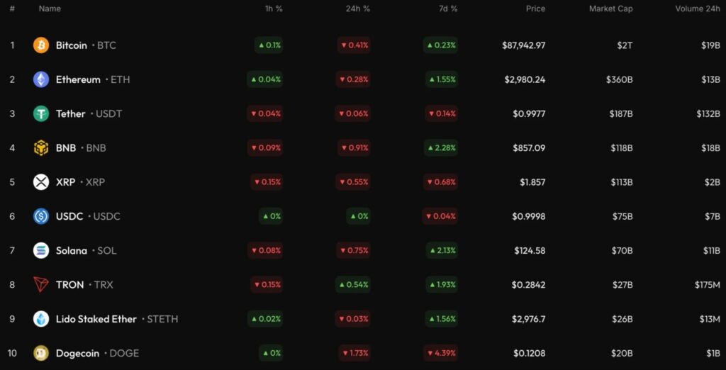 Harga Bitcoin diperdagangkan di sekitar USD 87.906 saat laporan diterbitkan, menunjukkan bahwa pasar crypto memulai tahun 2026 dengan fase sideways. Pergerakan seperti ini bukan hal yang tidak biasa di antara kripto besar setelah periode kenaikan atau penurunan signifikan di kuartal sebelumnya.