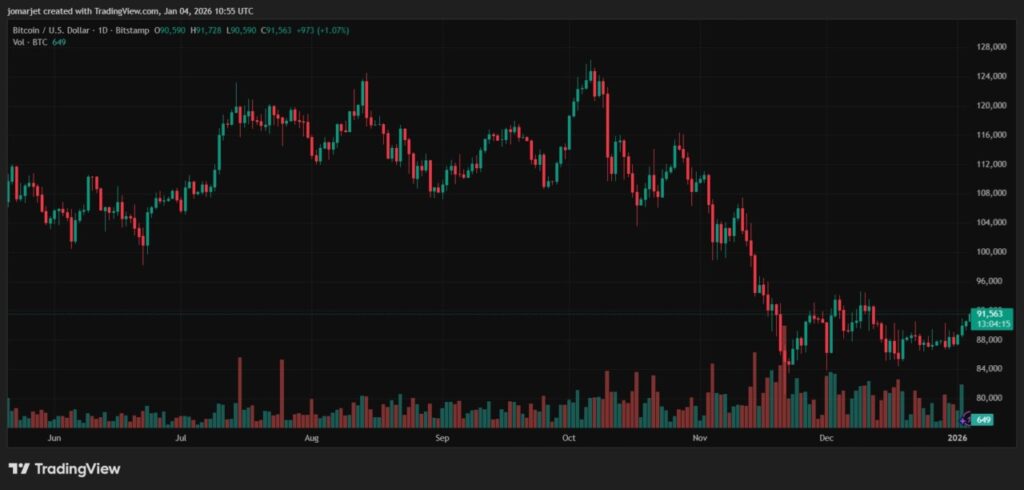 Berdasarkan data pasar yang tersedia, harga Bitcoin tetap menguat di atas level USD90.000 meskipun tekanan geopolitik muncul. Ini menjadi indikasi bahwa level support utama tetap bertahan di tengah berita besar.