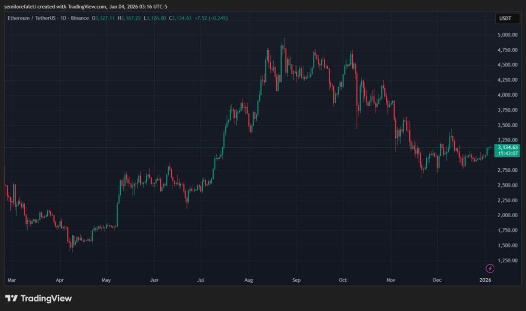 Meskipun inflow besar tercatat di akhir 2024, harga Ethereum tetap berada di bawah puncak historisnya yang tercapai pada Agustus 2021. Menurut NewsBTC, ETH diperdagangkan sekitar US$3.100 pada awal 2026 dengan penurunan volume perdagangan harian yang signifikan dibandingkan periode sebelumnya.
