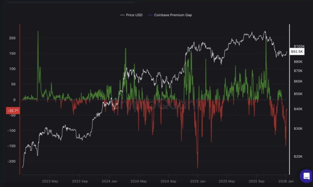 Selain itu, Coinbase Premium Gap menunjukkan pemulihan signifikan setelah sebelumnya sempat anjlok tajam pada akhir bulan lalu. Ini menjadi indikator bahwa para pelaku pasar profesional kembali aktif melakukan pembelian, seiring dengan berakhirnya tekanan jual akibat efek penutupan akhir tahun.