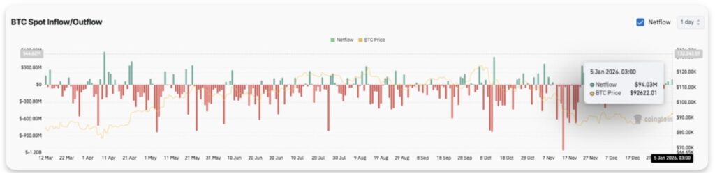 Menariknya, pada awal Januari tercatat netflow positif sekitar $94 juta, yang menunjukkan adanya peningkatan permintaan dan menurunnya tekanan jual. Dengan demikian, aktivitas spot kini turut mendukung stabilitas harga dalam jangka pendek.