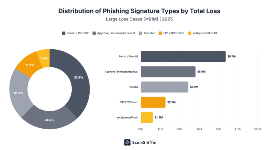 Scam Sniffer juga menunjukkan bahwa total kerugian dari serangan ini bisa jauh lebih tinggi, karena firma tersebut hanya melacak penipuan tanda tangan on-chain dan tidak termasuk kerugian dari malware clipboard, rekayasa sosial, dan kompromi kunci pribadi langsung.