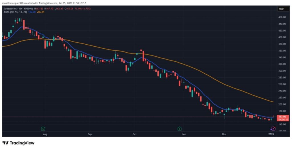 Sementara harga Bitcoin terus menunjukkan tren positif, Strategy tampaknya tidak terpengaruh oleh dinamika pasar saham yang kurang menguntungkan. Saham mereka, yang diperdagangkan dengan simbol MSTR, telah mengalami penurunan lebih dari 50% sepanjang tahun 2025, dengan harga perdagangan terkini sekitar $163 pada hari Senin.