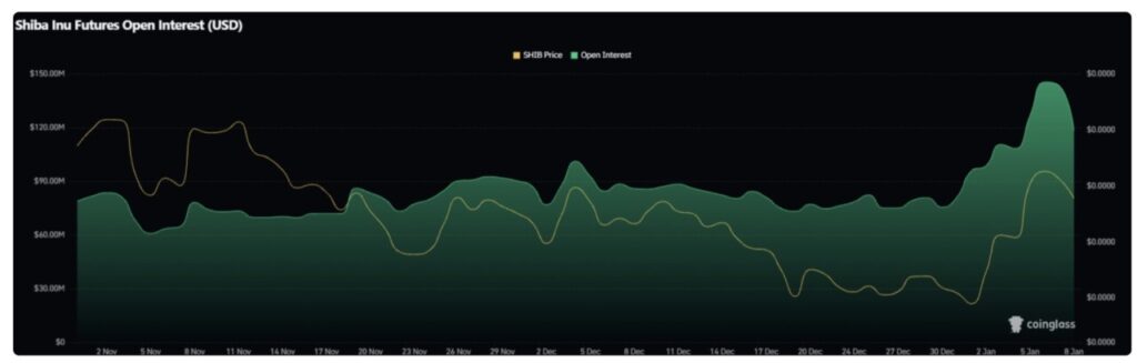 Lebih lanjut, open interest (OI) SHIB juga menunjukkan tren penurunan. Coinglass mencatat bahwa OI SHIB turun dari puncaknya di angka $145 juta menjadi level terendah baru di sekitar $118 juta. Ini mengindikasikan penurunan volatilitas karena semakin sedikit trader yang membuka posisi di SHIB.