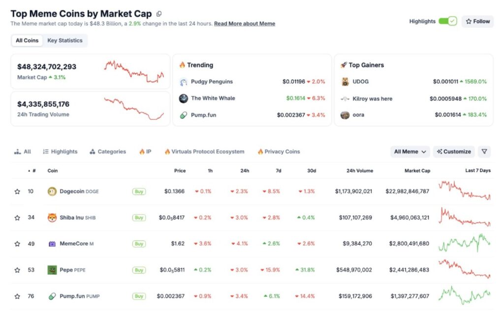 Pepe tetap menjadi salah satu meme coin terkuat untuk diperhatikan minggu ini, namun struktur harganya menunjukkan sinyal yang campur aduk. Token ini telah naik hampir 35% dalam 30 hari terakhir, menjadikannya salah satu dengan kinerja terbaik di kategori koin meme.