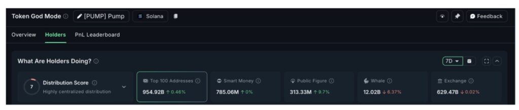 Keraguan ini tercermin dalam perilaku whale. Selama tujuh hari terakhir, dompet whale mengurangi kepemilikan sebesar 6,37%. Saat ini, saldo whale berada di angka 12,02 miliar PUMP, yang berarti sekitar 820 juta token telah dijual dalam satu minggu, meskipun harga masih naik. Dengan harga saat ini, itu setara dengan sekitar $2 juta yang telah didistribusikan.