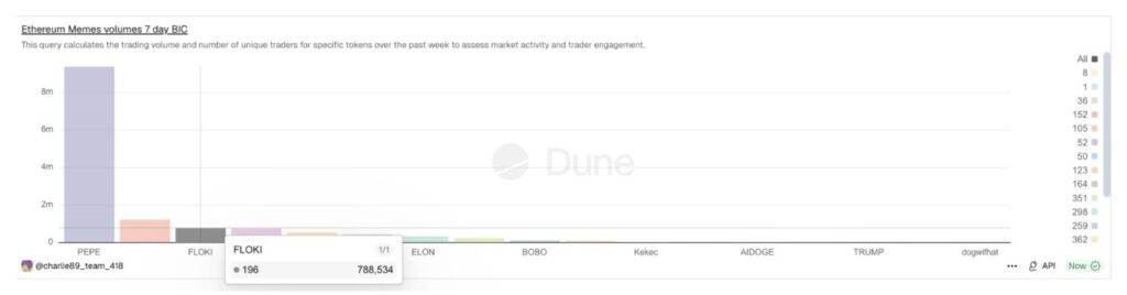 Data minat pasar mendukung hal ini. Pada awal Januari, Floki tercatat sebagai koin meme paling banyak diperdagangkan ketiga, baik dari sisi volume maupun jumlah trader unik — hanya kalah dari Pepe dan BabyDoge. Peningkatan aktivitas ini menunjukkan bahwa trader lebih cenderung mengalihkan perhatian, bukan keluar sepenuhnya dari pasar meme coin.