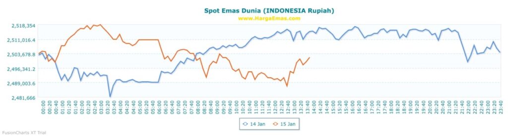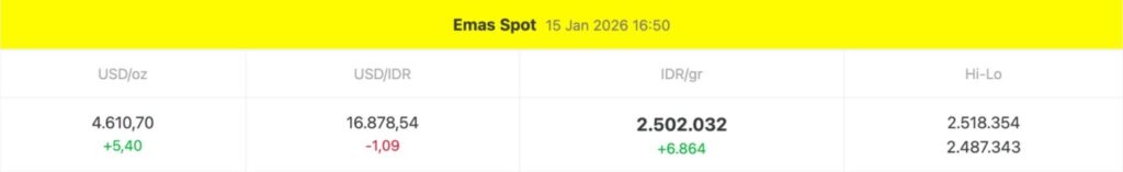 Secara keseluruhan, grafik harga emas Antam hari ini, 15 Januari 2026, menunjukkan tren penguatan yang dipengaruhi oleh harga emas dunia dan faktor nilai tukar. Meskipun terdapat fluktuasi intraday, arah pergerakan harga masih relatif positif. Kondisi ini mencerminkan minat pasar yang tetap kuat terhadap emas sebagai aset lindung nilai.