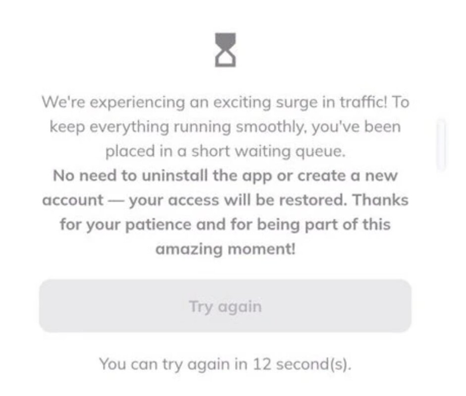 Banyak pengguna menerima pesan antrean dan diminta untuk bersabar. Pi Network menyatakan bahwa keterlambatan ini murni disebabkan oleh lonjakan trafik, dan menegaskan bahwa akses akan kembali normal tanpa perlu menginstal ulang aplikasi.
