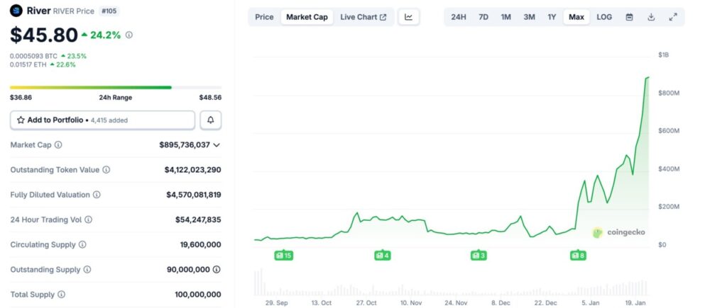 Jakarta, Pintu News – Token River (RIVER) mencapai puncak tertinggi baru selama jam perdagangan awal di Asia, melanjutkan tren kenaikan yang telah meningkatkan nilai altcoin ini hampir 750% dalam satu bulan terakhir. Sebagai bagian dari ekosistem keuangan terdesentralisasi , River memperkenalkan sistem stablecoin yang inovatif, menarik perhatian investor dan pengamat pasar.