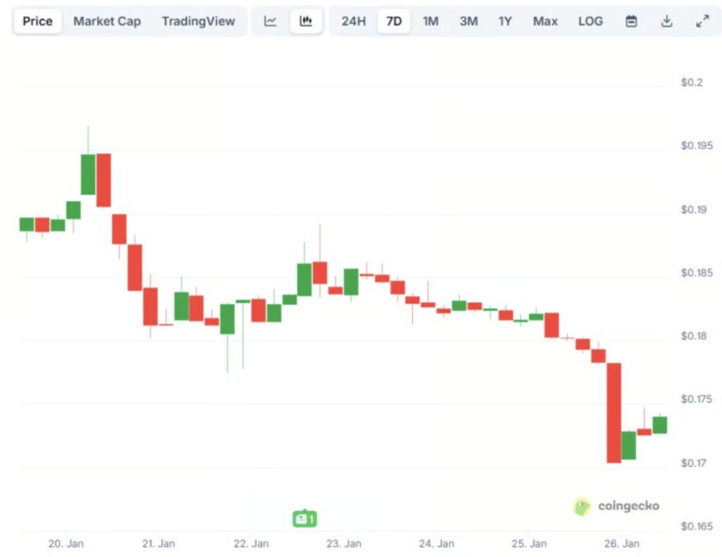 Pada 26 Januari, harga token PI dari Pi Network anjlok ke $0,17 ā level terendah sejak mulai diperdagangkan pada Februari tahun lalu. Kapitalisasi pasarnya juga turun di bawah $1,5 miliar, menjadikannya mata uang kripto terbesar ke-75 saat ini.