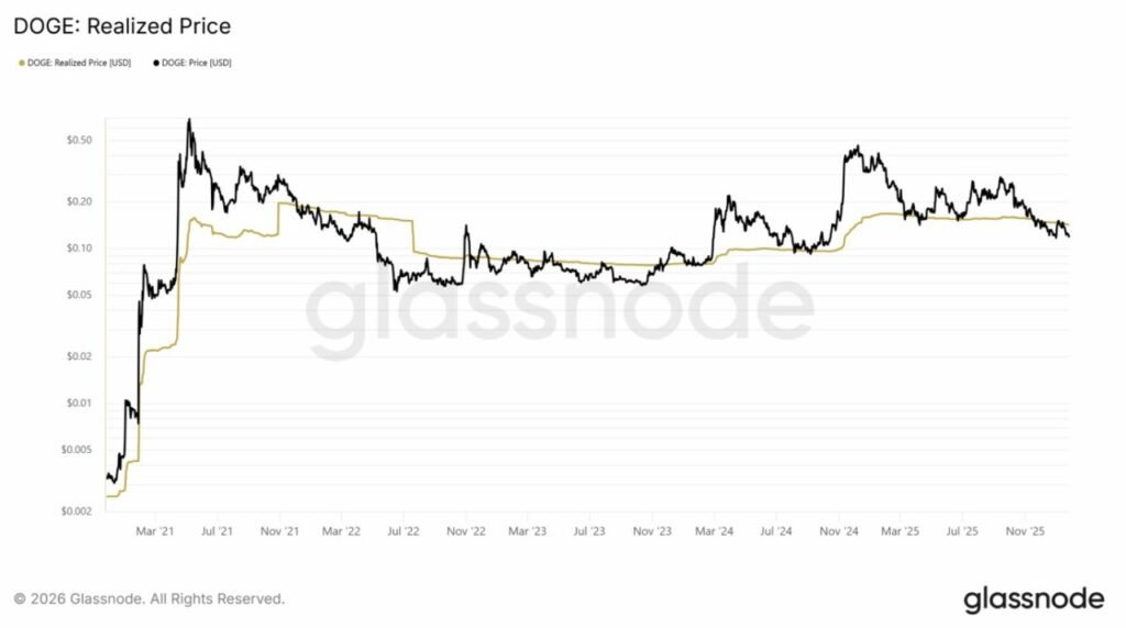 Metrik Realized Price juga memberikan sinyal peringatan bagi investor jangka panjang. Baru-baru ini, Dogecoin turun di bawah harga realisasi sebesar $0,146 dan mengujinya kembali sebagai resistance.