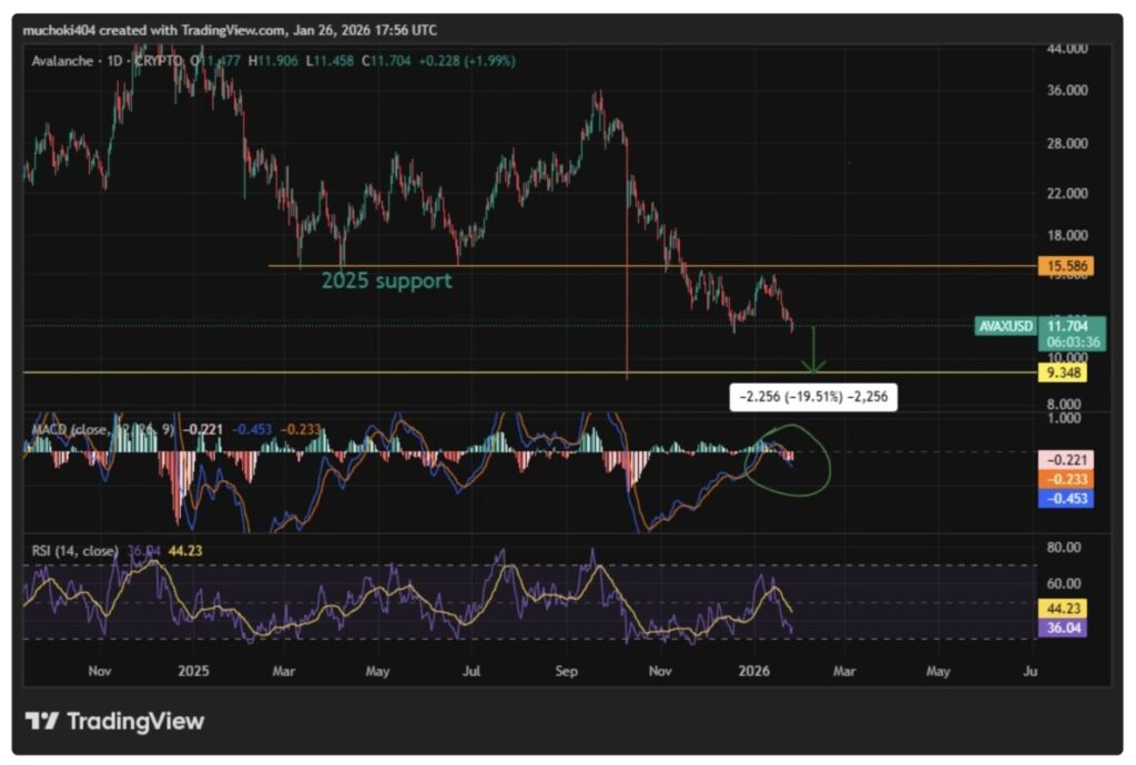 Dari sudut pandang analisis teknikal, harga AVAX diperkirakan akan menguji ulang level support di sekitar $9,3. Selain itu, pasangan AVAX/USD baru-baru ini ditolak di kisaran $15, yang sebelumnya merupakan level support kuat pada tahun 2026.