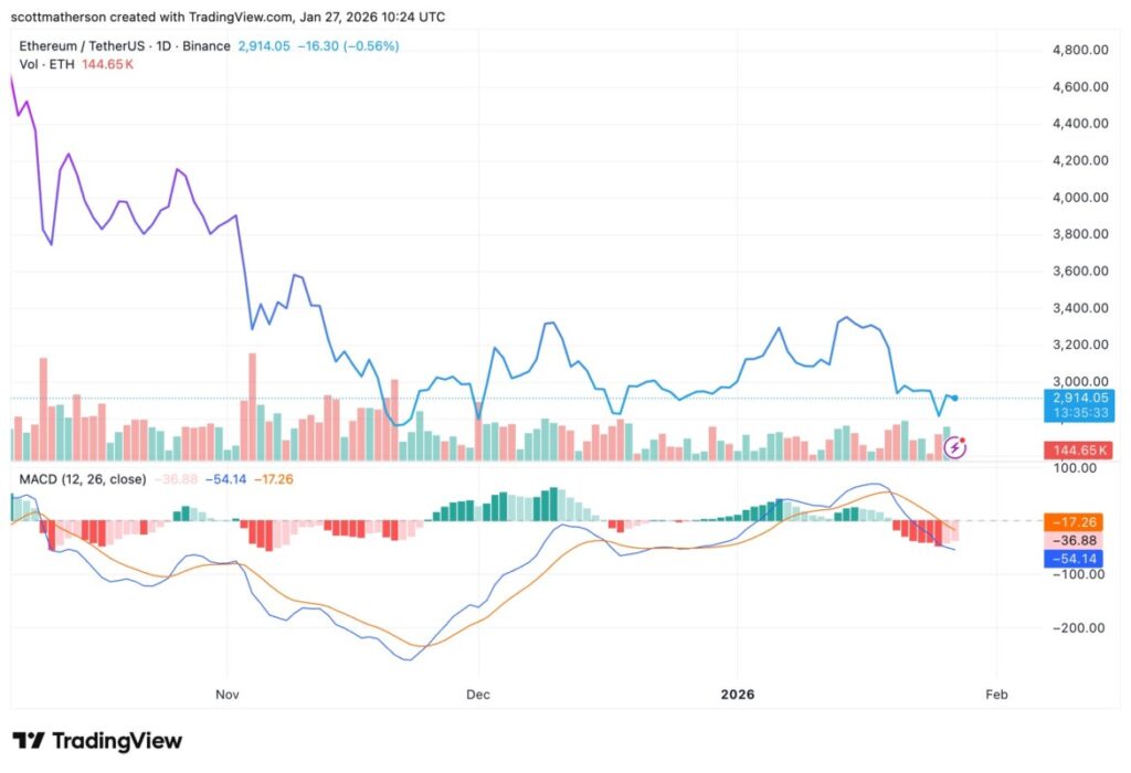 Data on-chain dan analisis pergerakan harga menunjukkan bahwa Ethereum telah menutup empat bulan terakhir dengan performa negatif, dan belum ada tanda pemulihan signifikan pada Januari 2026. Harga ETH saat ini masih bergerak di kisaran bawah USD 3.000, mencerminkan tekanan bearish yang relatif kuat dalam beberapa bulan terakhir. Tren ini secara teknikal menggarisbawahi kurangnya momentum bullish yang diperlukan untuk membalik arah pasar dari tren turun jangka panjang.