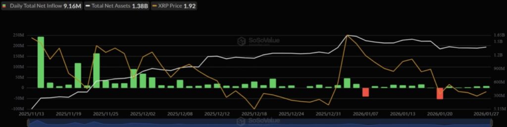 Mata uang kripto lain seperti Binance Coin , Solana (SOL), dan Dogecoin juga menunjukkan performa positif dengan reli harga. Selain itu, ETF spot XRP mencatat arus masuk bersih yang tinggi sebesar 9,16 juta, yang turut mendukung sentimen positif pasar.