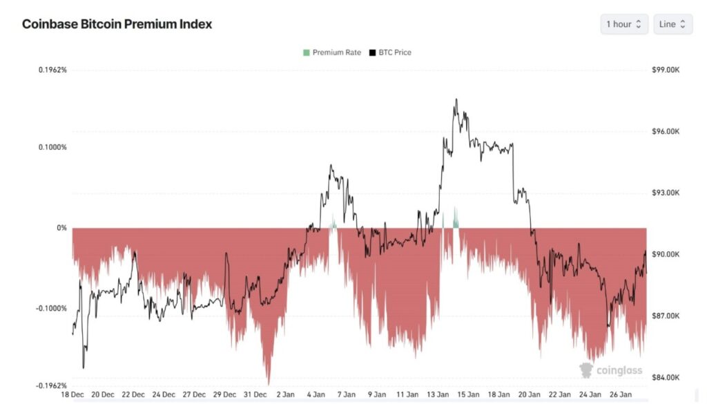 Namun, partisipasi pasar yang mendasari masih belum merata. Indeks premi Bitcoin Coinbase — yang melacak permintaan spot di AS melalui bursa tersebut — masih berada di zona negatif yang dalam. Ini mengindikasikan bahwa reli saat ini lebih didorong oleh perdagangan berjangka dan leverage, bukan oleh pembelian spot yang kuat dari investor AS.